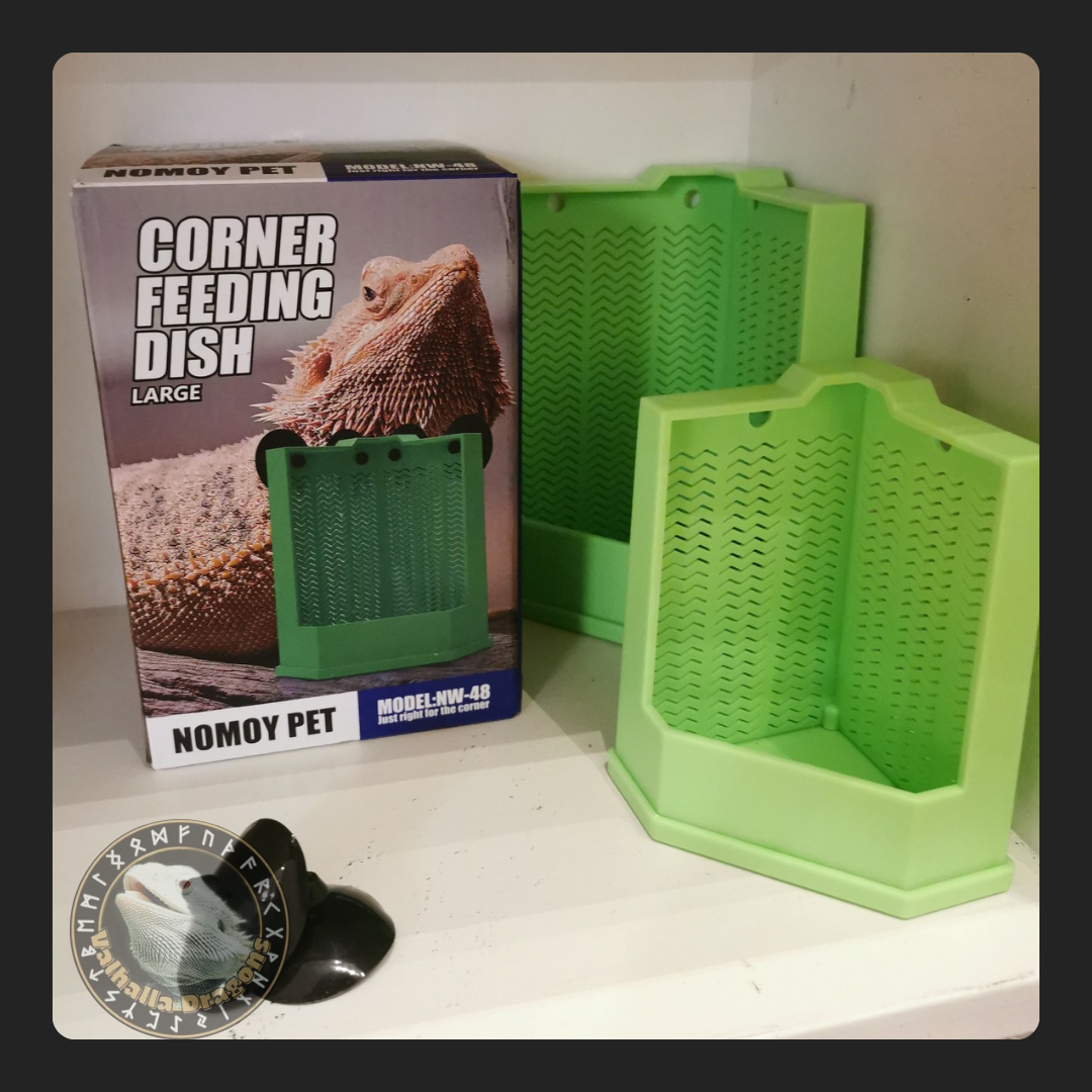Smart hjørne "feeder" til insekter. Flugtsikkert alternativ til foderskål. Insekterne kravler op af bagsiden, men slipper ikke ud. Perfekt til bænkebider, kakerlakker og andre kravlende insekter. Inkl. sugekopper, hvis det ønskes at fastsætte den i hjørnet. Fås i to størrelser - denne er i Large
