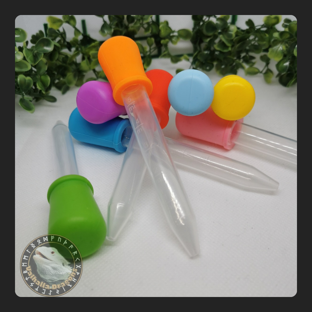 Assorteret farver. Pipetten er fantastisk til, at tilbyde væske til din skægagame, ved at dryppe på deres snude.